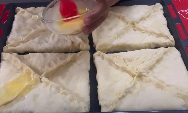 Preriscaldare il forno a 200°C. Ungere i pezzi con la margarina e cuocere su una teglia per circa 20-25 minuti fino a doratura. Servire il khachapuri caldo con burro fuso.